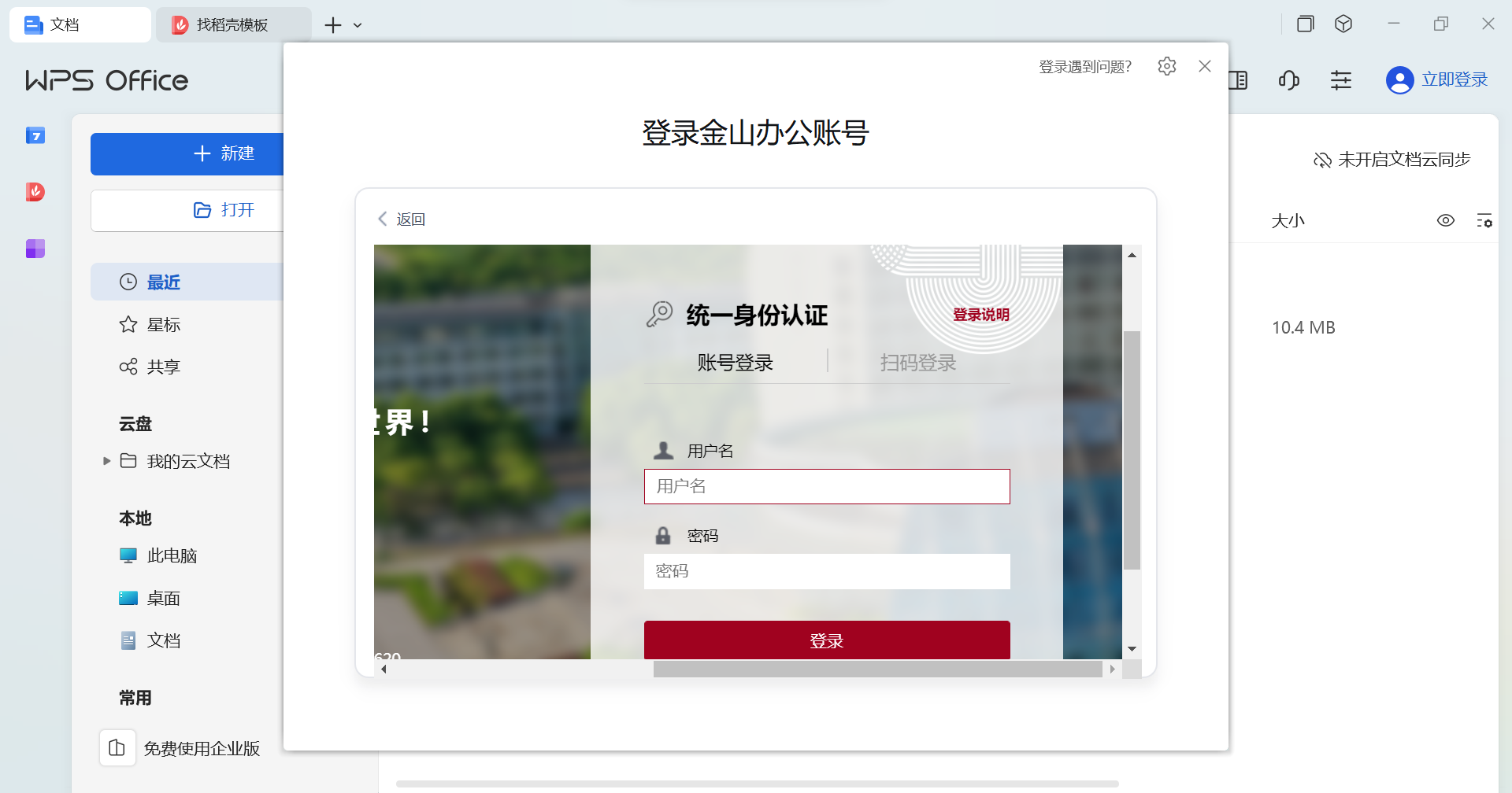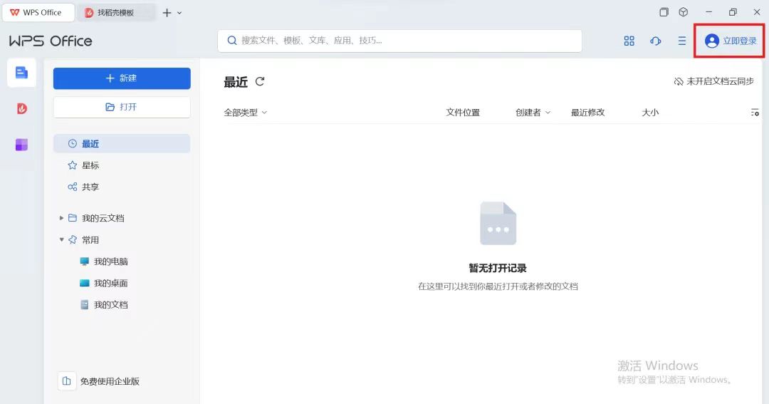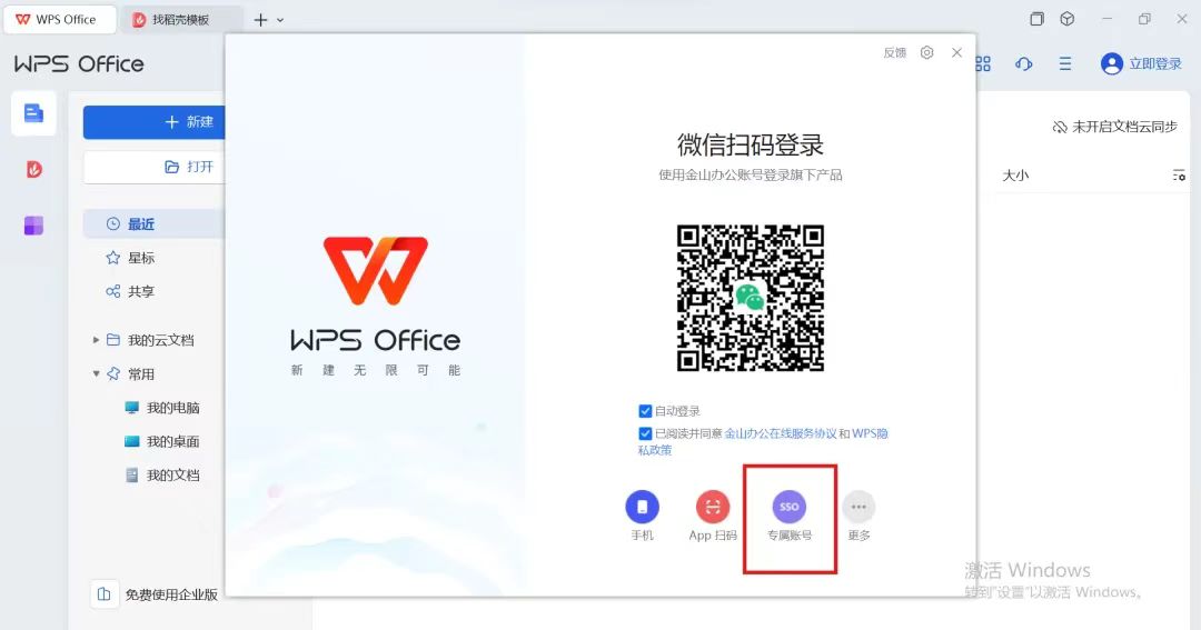 1. 打开WPS,点开右上角登录按钮,进入登录界面。