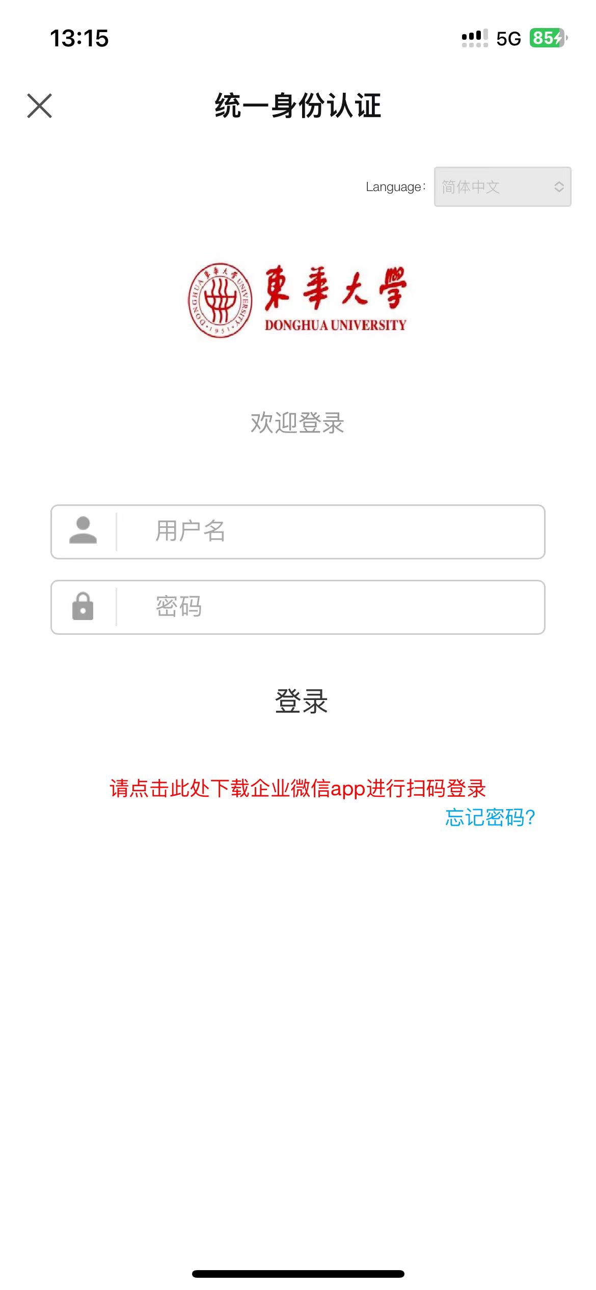 3. 验证后跳转到东华大学统一身份认证界面登录后即可使用。
