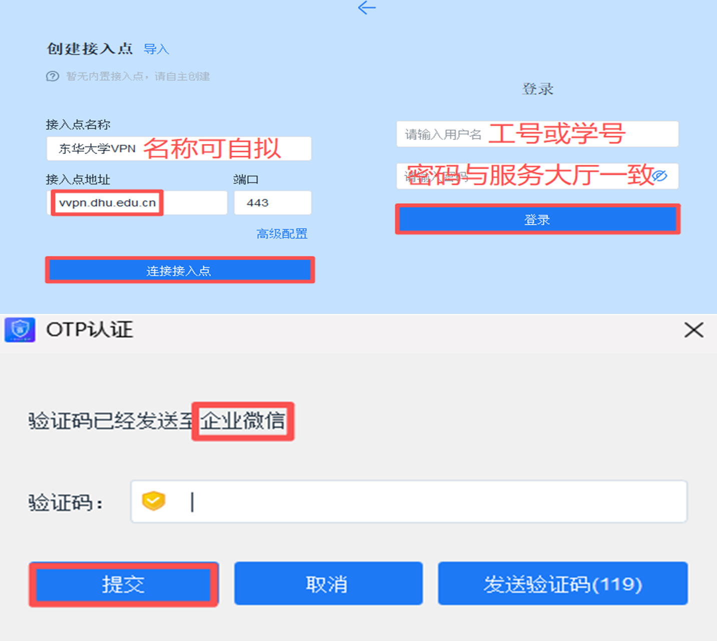 | 访问资源融合 | 告别原来信息系统(vpn.dhu.edu.cn)和电子文献资源(vip.dhu.edu.cn)校外访问需要使用不同VPN的历史,新版VPN仅需配置一个VPN接入点(vvpn.dhu.edu.cn),在连接成功界面一键切换,即可直接访问上述两类资源。 |