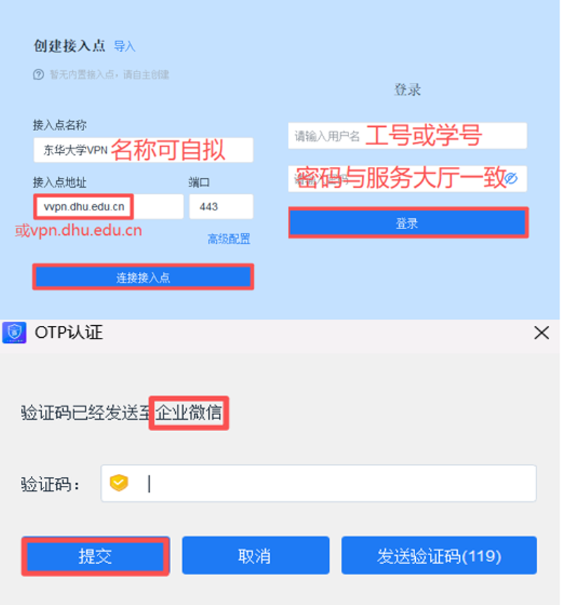 | 访问资源融合 | 告别原来信息系统和电子文献资源校外访问需要使用不同VPN的历史,新版VPN仅需配置一个VPN接入点(vvpn.dhu.edu.cn或vpn.dhu.edu.cn),在连接成功界面一键切换,即可直接访问上述两类资源。 |